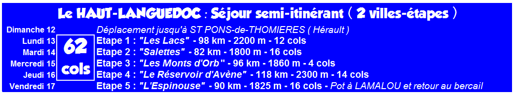 Au programme : 98 km… 12 cols… pour 2200 m. de dénivelé !